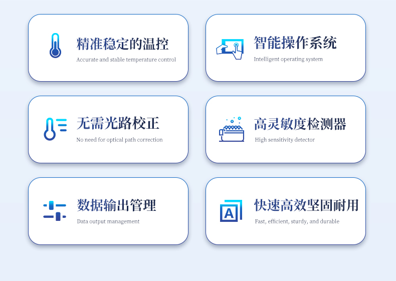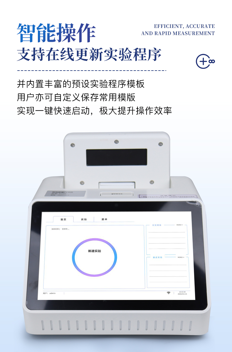 | 1.智能操作系統(tǒng),實(shí)驗(yàn)盡在掌握 | A程序更新與預(yù)設(shè):支持在線更新實(shí)驗(yàn)程序,并內(nèi)置豐富的預(yù)設(shè)實(shí)驗(yàn)程序模板,用戶亦可自定義保存常用模版,實(shí)現(xiàn)一鍵快速啟動,極大提升操作效率。 | B操作簡單:無論是觸摸屏界面還是電腦軟件,均設(shè)計(jì)得直觀易懂,新用戶也能快速上手。預(yù)置常用程序模板,進(jìn)一步簡化操作流程。 | 2.精準(zhǔn)穩(wěn)定的溫控與光學(xué)核心 | A長久精準(zhǔn)的溫控系統(tǒng):采用進(jìn)口***TEC半導(dǎo)體制冷模塊,控溫精準(zhǔn)(±0.1°C),孔間溫度均勻性**(≤±0.3°C)。系統(tǒng)穩(wěn)定性卓越,長期使用性能衰減小,校準(zhǔn)周期長達(dá)數(shù)年,顯著降低維護(hù)成本與運(yùn)營中斷。 | B免維護(hù)的靈敏光學(xué)系統(tǒng):配備單個(gè)獨(dú)立LED光源與單個(gè)獨(dú)立光電二極管檢測器,采用超長壽命進(jìn)口光源,設(shè)計(jì)壽命期內(nèi)免維護(hù),無需額外校準(zhǔn)或更換,保障檢測結(jié)果長期一致性與高靈敏度。 | C卓越的數(shù)據(jù)質(zhì)量:實(shí)驗(yàn)線性相關(guān)性高(R2≥0.999),重復(fù)性優(yōu)異(孔間CV值低),確保定量結(jié)果準(zhǔn)確可靠,數(shù)據(jù)置信度高。 | 3.**便捷的數(shù)據(jù)與輸出管理 | A多重?cái)?shù)據(jù)導(dǎo)出方式:支持通過USB存儲設(shè)備直接拷貝,或經(jīng)由Wi-Fi無線網(wǎng)絡(luò)傳輸數(shù)據(jù)至本地服務(wù)器或云端,方便靈活,滿足各類實(shí)驗(yàn)室數(shù)據(jù)管理習(xí)慣。 | B豐富的報(bào)告導(dǎo)出與打?。褐С稚刹?dǎo)出多種格式(如PDF、Excel)的實(shí)驗(yàn)報(bào)告。儀器兼容USB熱敏打印機(jī)、藍(lán)牙無線打印機(jī)及常規(guī)A4打印機(jī),可直接在儀器上或通過電腦一鍵導(dǎo)出并打印專業(yè)報(bào)告,便于結(jié)果存檔與即時(shí)分享。 | 4.快速**與堅(jiān)固耐用 | A升降溫速度快:優(yōu)化設(shè)計(jì)的溫控系統(tǒng)具備高速升降溫能力,顯著縮短單次循環(huán)與整體檢測時(shí)間,提升實(shí)驗(yàn)通量。 | B超長使用壽命:核心部件均選用工業(yè)級耐用材料與設(shè)計(jì),整機(jī)運(yùn)行穩(wěn)定可靠,致力于為用戶提供長久的投資回報(bào)。 |