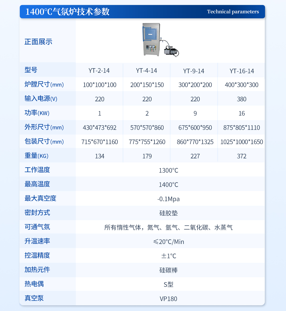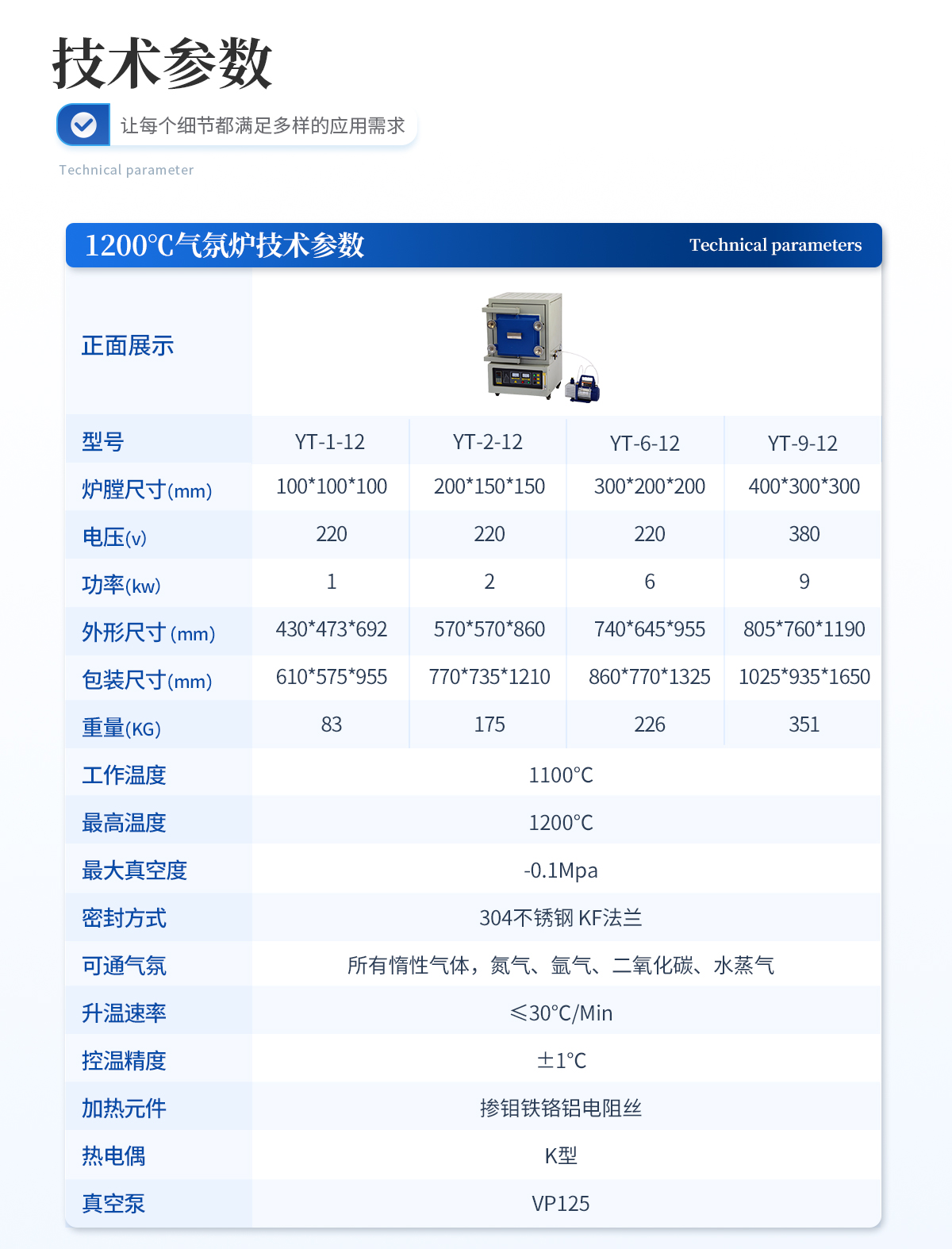 型號:YT-1-12 產品簡介:我司在高溫電爐領域有著超過15年的經驗、主營產品包括:箱式爐、氣氛爐、管式爐、坩堝爐、升降爐、臺車爐、牙科義齒爐、晶體生長爐、真空爐、石墨爐、排膠爐、等300°-3000°高溫設備,并可提供各種非標定···   更新時間:2026-03-03