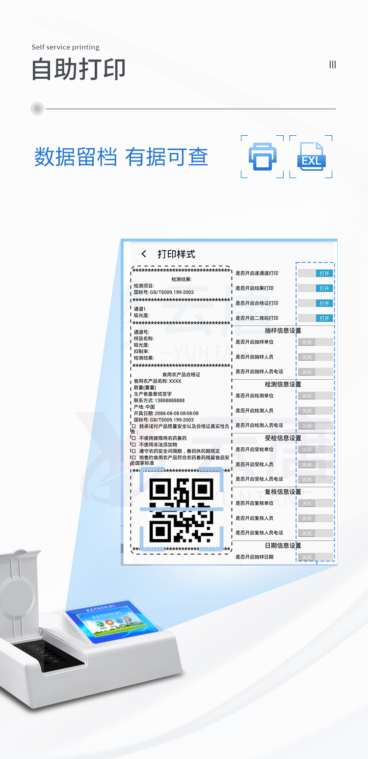 4、 配備嵌入式熱敏打印機(jī),可選擇手動打印或者自動打印,三分鐘出打印結(jié)果。
