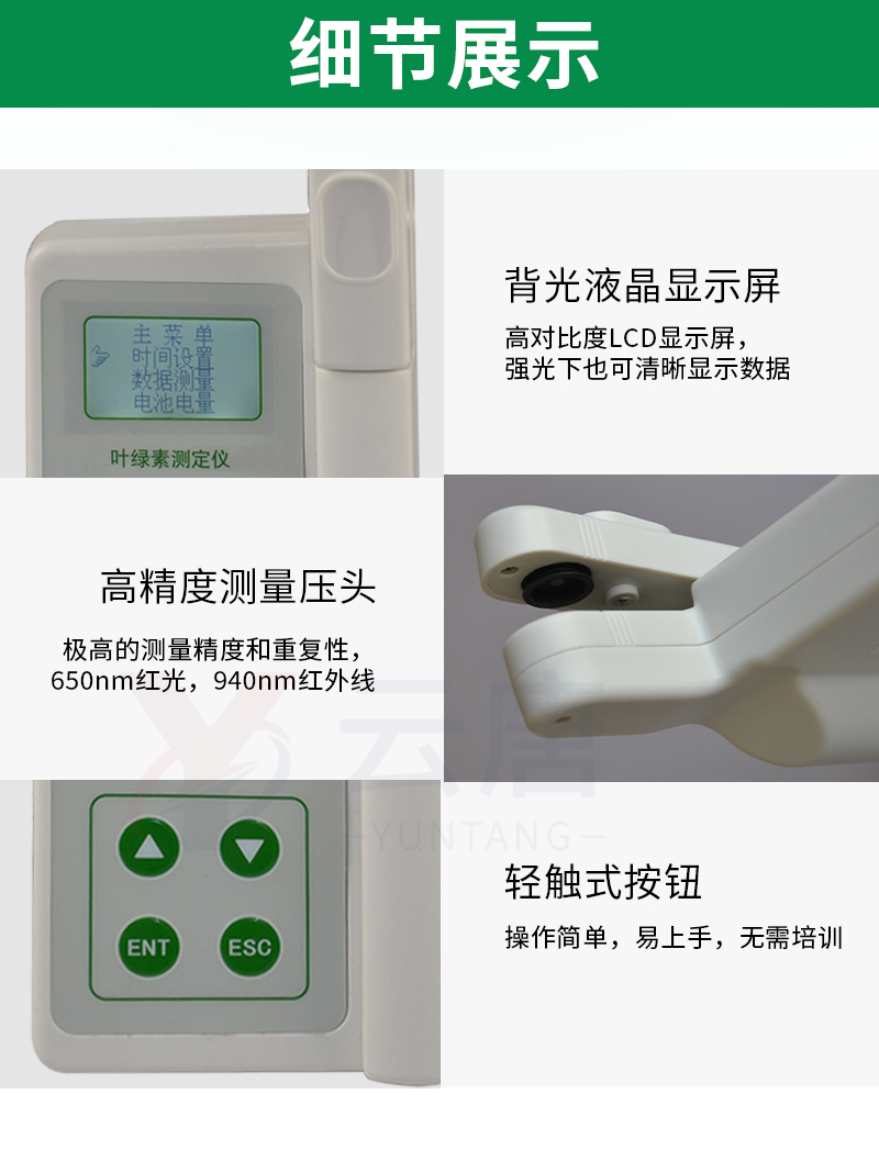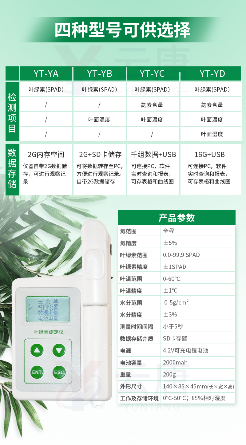 YT-YA植物葉綠素儀可以即時測量植物的葉綠素相對含量(單位SPAD)或“綠色程度”從而可以了解植物真實的硝基需求量并且幫助您了解土壤硝基的缺乏程度或是否過多地施加了氮肥。您可以通過這種儀器來增加氮肥的利用率,并可保護環境(防止施加過多的氮肥而使環境特別是水源受到污染)。